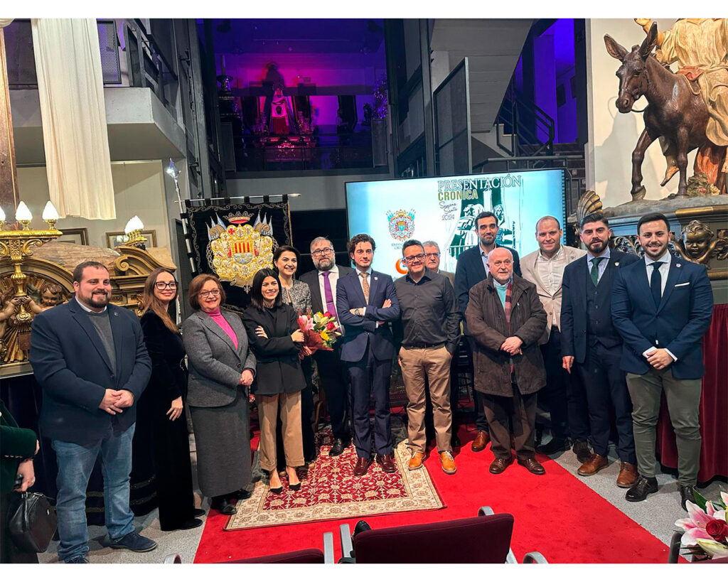 Seguidamente, se desarrolló la proyección de la Crónica-memoria de la Semana Santa crevillentina 2024, un hito que, en el actual ejercicio, revistió un notable interés y una concurrencia masiva. El joven docente e historiador crevillentino D. Cristian Cortés Ruiz se estrenó en esta labor con un trabajo audiovisual novedoso y que contó con la aprobación del numeroso público asistente. Cortés aunó – por primera vez en la crónica pasionaria- dos géneros literarios: narrativa y teatro. Además, quiso reunir tributo a la figura de D. Pascual Mas Mas, un crevillentino insigne que fue entrevistado para la primera revista de Semana Santa en el año 1925 y que ocupó la Presidencia de la Diputación alicantina en el período comprendido entre 1925 a 1930. El personaje de D. Pascual Mas fue interpretado magistralmente por el crevillentino D. José Ángel Asencio Alfaro, expresidente de la Asociación de fiestas de Moros y Cristianos y persona fuertemente comprometida con las tradiciones crevillentinas. La producción del proyecto ideado por el Cronista corrió a cargo de la firma Cableworld en Crevillent, siendo el técnico crevillentino D. José Luis Navarro Díaz quien montó con maestría las diferentes escenas del filme.