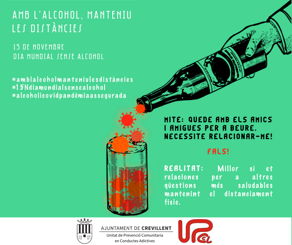 Les Unitats de Prevenció Comunitària de Conductes Addictives (UPCCA) de la Comunitat Valenciana s’uneixen per a llançar una campanya amb motiu del Dia Nacional Sense Alcohol que es commemora el 15 de novembre en Espanya i altres molts països. L’objectiu d’aquesta campanya és sensibilitzar a tota la societat sobre els perills del consum d’alcohol en temps de la COVID-19