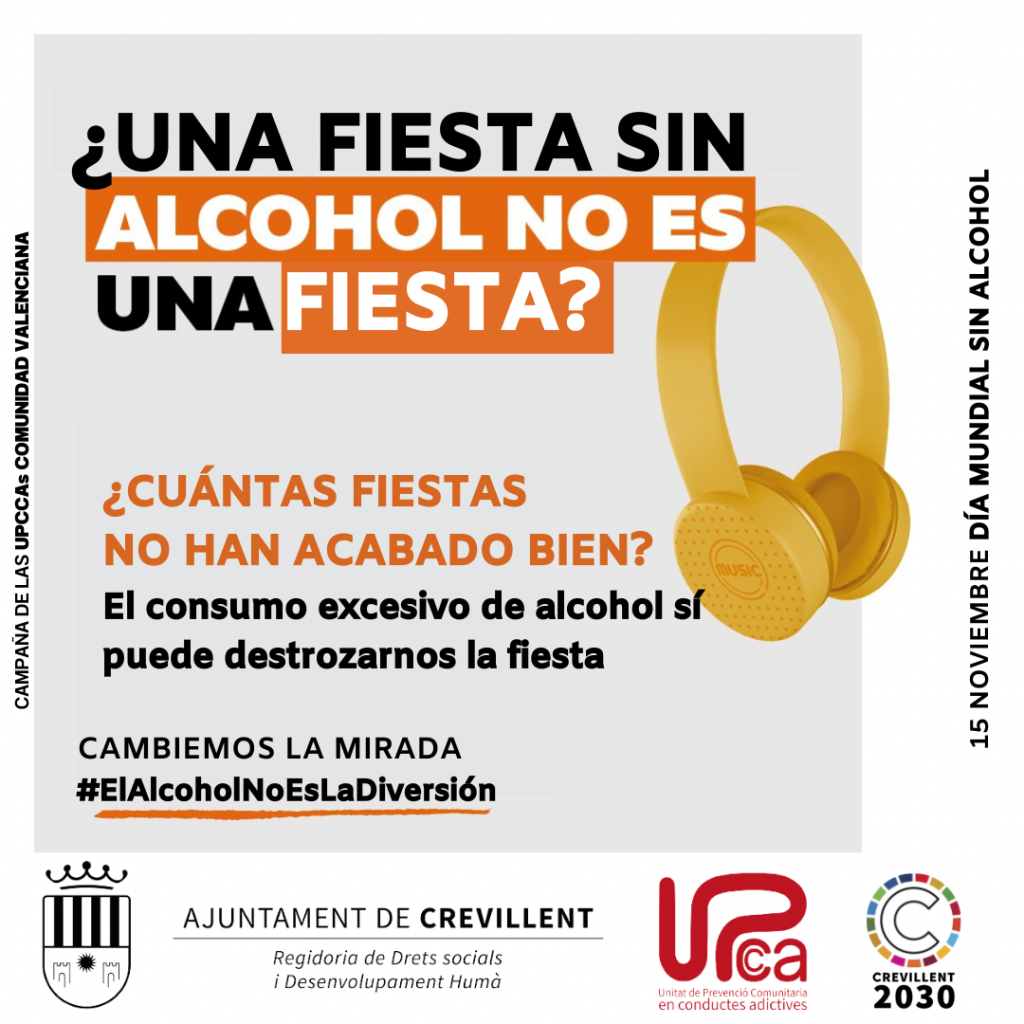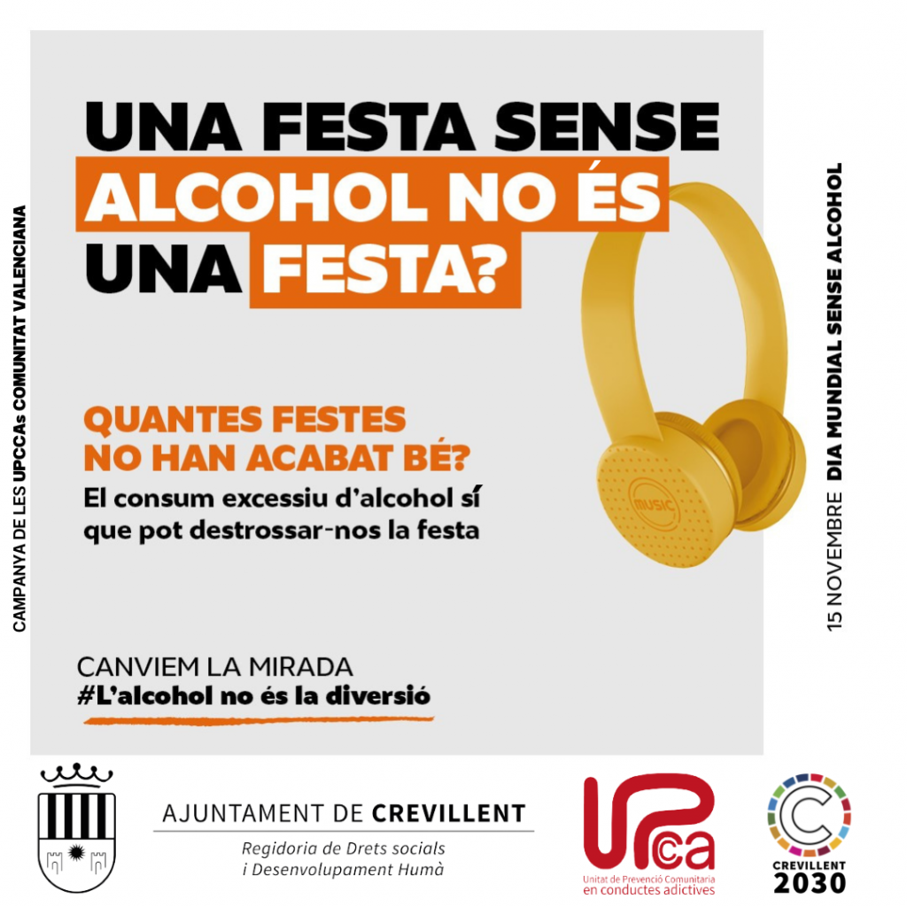- Hui se celebra el Dia Mundial sense Alcohol, establit per l’Organització Mundial de la Salut (OMS), amb l’objectiu de conscienciar a la població sobre els danys que ocasiona el consum d’alcohol, per això la UPCCA de l’Ajuntament de Crevillent dona inici a la seua campanya