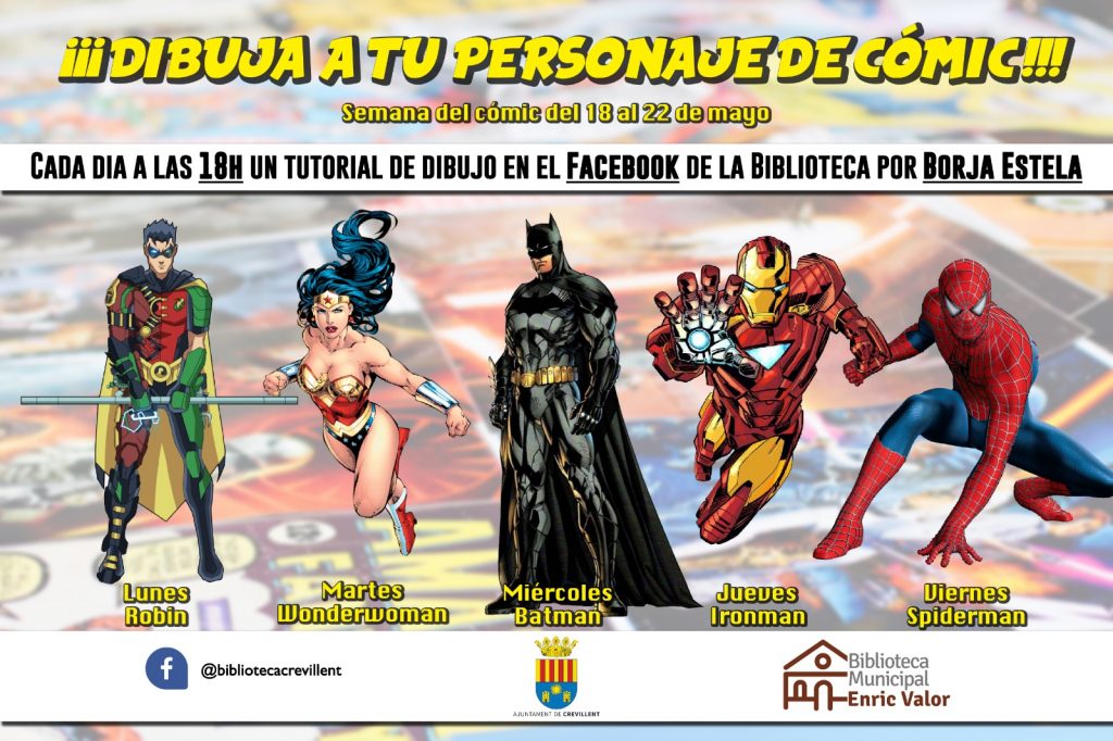 Cada día a las 18 horas se podrá disfrutar de unos tutoriales en los que se enseña a dibujar los distintos personajes de Marvel y DC Cómics como son Robin, Wonderwoman, Batman, Ironman y Miss Marvel. Estos tutoriales han sido adquiridos por la Concejalía de Cultura al profesor de dibujo Fco. Borja Estela Prieto y formarán parte del canal de Youtube de Cultura del Ayuntamiento de Crevillent.