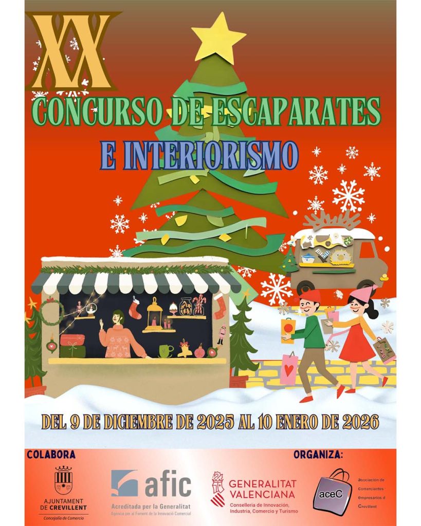 Crevillent – La Concejalía de Comercio colabora, con la Asociación de Comerciantes y Empresarios de Crevillent (ACEC), en la organización del XX Concurso de Escaparates e Interiorismo que tendrá lugar entre el 9 de diciembre de 2025 y se extenderá hasta el 10 de enero de 2026. El fallo de jurado y entrega de los premios se realizará el 17 de enero en el tradicional acto del Sorteo de Navidad en Casa de Cultura a partir de las 18:00 horas. Los comercios interesados se pueden apuntar por Registro o por Sede Electrónica hasta el 19 de diciembre y el presupuesto para los distintos premios será de 1.200€ a cargo del Ayuntamiento.
