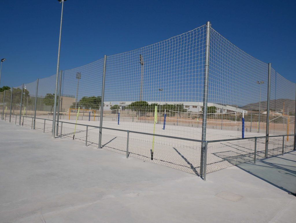 - Es tracta d’un camp de futbol d’arena de platja que es pot dividir en dues pistes de voleibol-platja, tots amb les mesures reglamentàries per a poder ser utilitzats en competicions oficials. S’ha actuat també en les pistes de pàdel per a ampliar el servei
