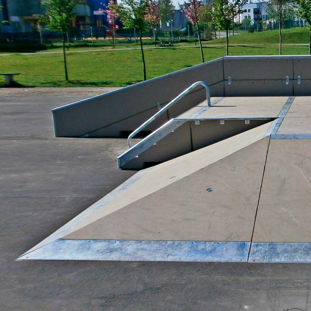 La superficie de actuación es de unos 470,00 m². El circuito propuesto está formado por cinco piezas, formadas por varios módulos: 1 Quarter doble, en un extremo, de 1.500 cm de altura, formado por 2 rampas de salto, 2 boxes y barandilla de acero galvanizado; 1 Quarter doble, en el otro extremo, de 980 cm de altura, formado también por 2 rampas de salto, 2 boxes y barandilla de acero galvanizado; 1 Funbox entre ambas rampas de salto, formado por 3 boxes de 700 cm de altura, 4 rampas rectas, una rampa de salto y un módulo de escaleras; 1 unidad de Rail oblicuo de acero galvanizado; 1 unidad Curb de acero galvanizado.
