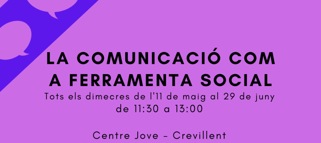 El taller “La comunicació com a ferramenta social” permetrà conéixer i desenvolupar habilitats d’autocura per a millorar la comunicació. Tindrà lloc cada dimecres des de l’11 de maig fins al 29 de juny, d’11:30 a 13:00 hores.