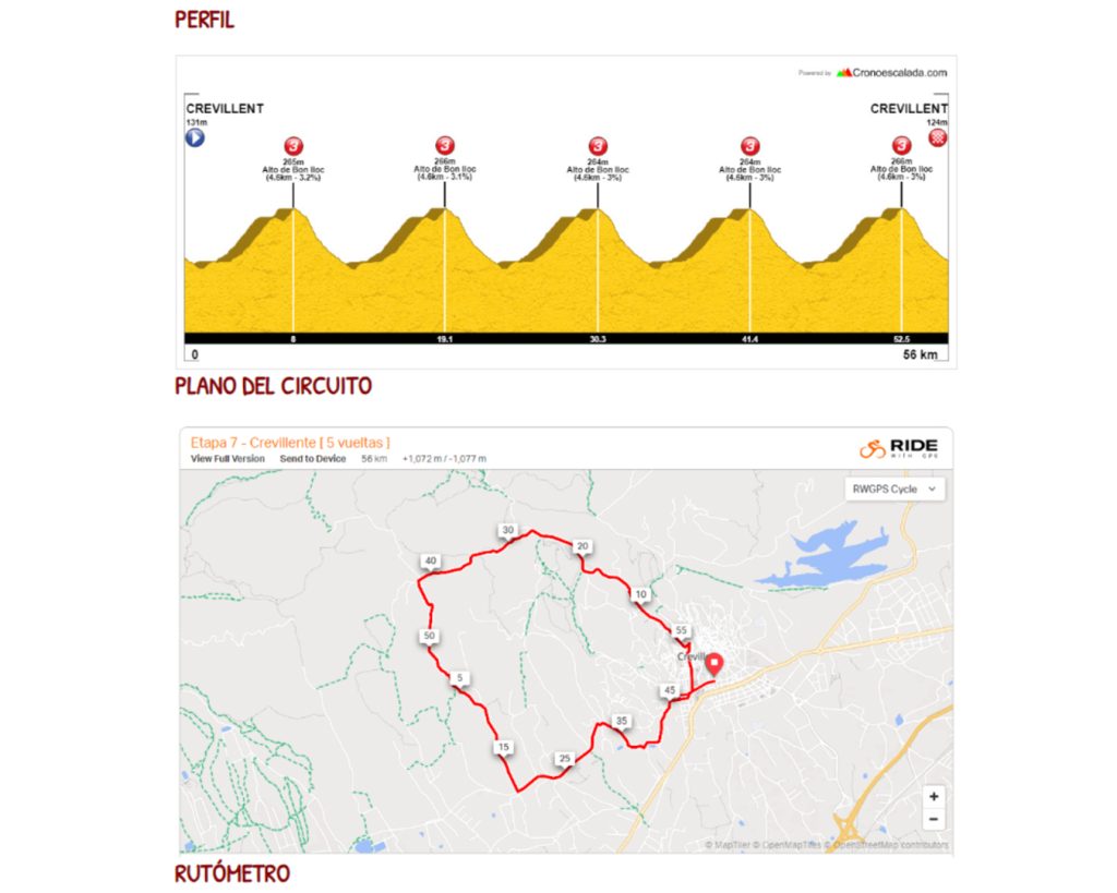 El circuito constará de un recorrido de 11km con 5 vueltas, con inicio y meta en el Paseo Fontenay, haciendo un total de 60 kilómetros aproximadamente con un desnivel acumulado de 1.100 metros. Como ha destacado el presidente del Club Ciclista Crevillent, Sergio García, “es una prueba bastante atractiva por su dureza, por ello, contaremos aproximadamente con cerca de 130 corredores