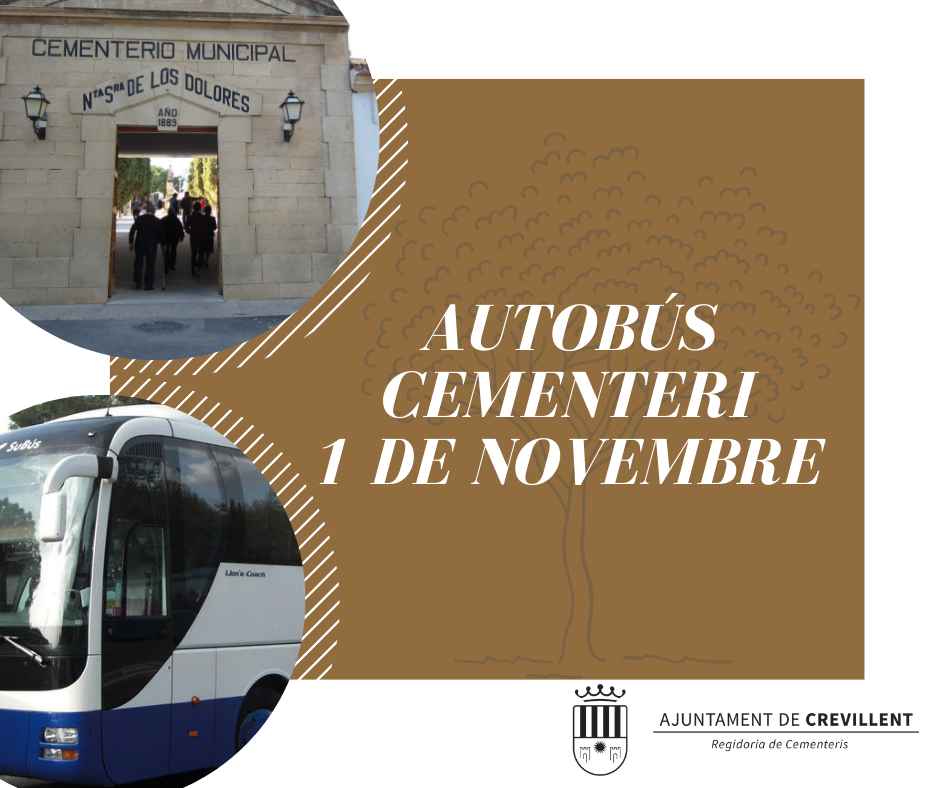 ).- La Regidoria de Cementeri informa que el pròxim dia 1 de novembre estarà disponible un autobús gratuït per a realitzar els trasllats al Cementeri Municipal, realitzant un circuit pel municipi per a facilitar al màxim el desplaçament de la ciutadania.