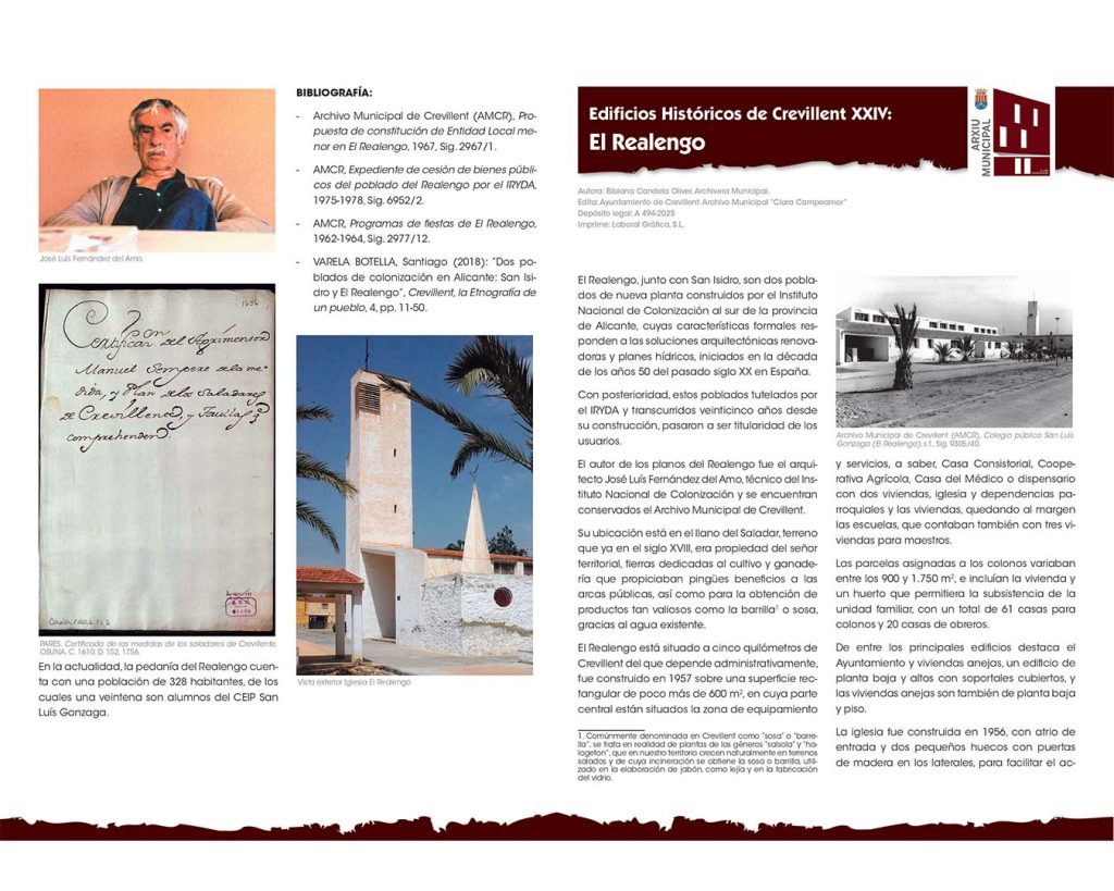 En este nuevo número se analiza el proceso de construcción de este poblado y su relación con Crevillent, ya que el 14 de julio de 1967, fueron los propios vecinos quienes solicitaron al Director General de Administración Local y del Instituto Nacional de Colonización, que el Realengo quedara constituido como entidad local menor dependiente del municipio de Crevillent, como así venía siendo desde 1961, por entonces con cerca de 600 residentes.