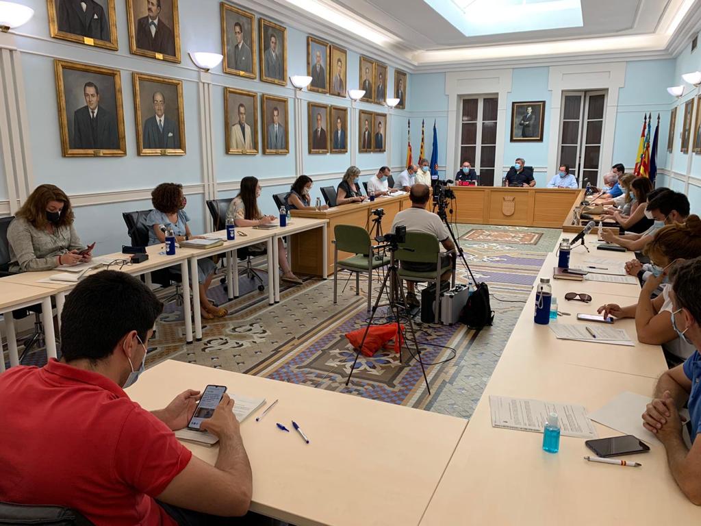 La Corporación Municipal celebró ayer lunes el pleno ordinario del mes de julio, una sesión que abordó numerosos puntos en la Orden del Día. Entre ellos estuvo la aprobación del sistema Régimen de Especial Disponibilidad en la Policía Local para la anualidad 2020 y de un complemento de productividad al personal esencial por los servicios extraordinarios prestados durante la pandemia del Covid-19, que salió adelante por unanimidad marcando una retribución extra de 300 y 600 euros en función de si los beneficiarios han trabajado por turnos o durante todo el periodo del estado de alarma, entre el 14 de marzo y el 3 de mayo.