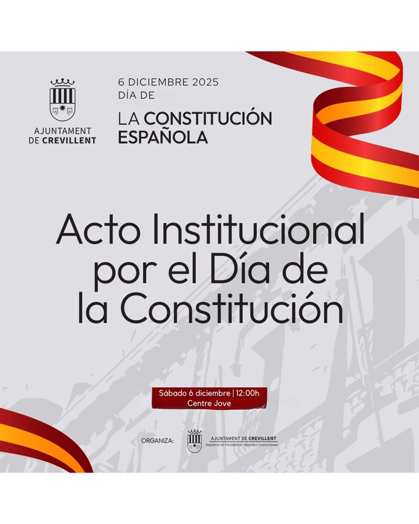 Crevillent – El Ayuntamiento de Crevillent ha presentado la programación del acto institucional con motivo del Día de la Constitución, que tendrá lugar este sábado 6 de diciembre. El concejal de Presidencia, Pedro García Magro, ha explicado que la iniciativa vuelve a centrarse en la juventud del municipio, especialmente en aquellos jóvenes que han cumplido o cumplirán 18 años durante este año 2025. “El propósito es poner en valor nuestra Carta Magna acercándola a quienes alcanzan la mayoría de edad, un momento en el que se adquieren obligaciones y responsabilidades, pero también privilegios y derechos”, ha señalado.