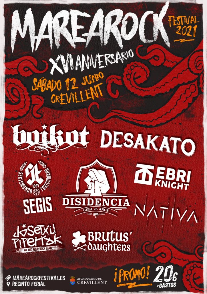 En cuanto al cartel, se mantendrá la participación de los artistas ya anunciados: Boikot, Desakato, Segismundo Toxicómano, Disidencia Oficial, Josetxu Piperrak & The Riber Rock Band, Ebri Knight, Nativa y Brutus’ Daughters. Las entradas para este evento ya están a la venta a través de la web www.marearockfestival.es a un precio de 20€ (+ gastos de gestión) y en los puntos de venta habituales.