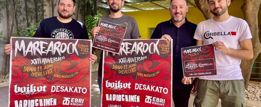 Crevillent – El próximo sábado, 11 de junio, Crevillent se convertirá en el epicentro del rock con el festival Marearock, que, tras dos años de parón por la pandemia, celebrará su XVII edición en la localidad alicantina. El Recinto Ferial abrirá sus puertas a las 16:15 h y acogerá la actuación de Boikot, Desakato, Radiocrimen, Ebri Knight, Brutus Daughters, Josetxu Piperrak, Segis y Nativa.