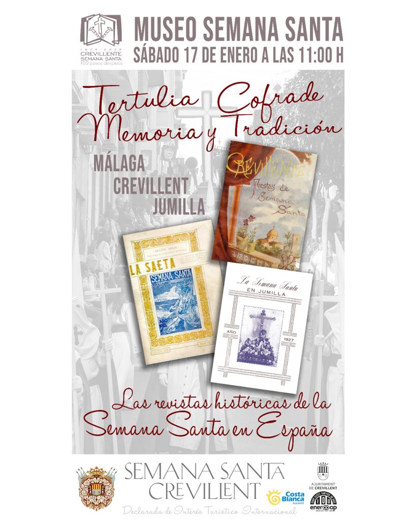 La ciudad acogerá el próximo 17 de enero el Almuerzo-Tertulia “Memoria y Tradición. Las revistas históricas de la Semana Santa en España: Málaga, Crevillent y Jumilla”, un encuentro cultural y cofrade que pone en valor el papel fundamental de las publicaciones decanas en la conservación y transmisión de la memoria de la Semana Santa.