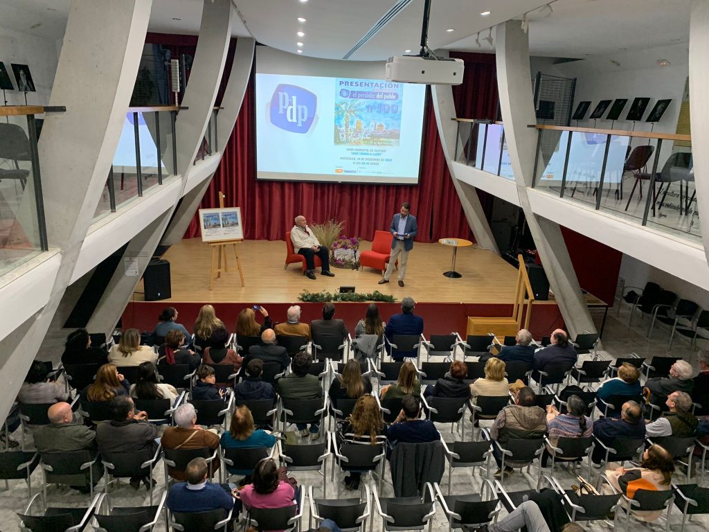 El salón de actos de la Casa Municipal de Cultura acogió ayer la presentación del número 100 de El Periòdic del Poble, en un evento presentado por el periodista Vicente López Deltell y en el que entrevistó a la concejal de Medios de Comunicación, Noemí Candela, al presidente del Grupo Enercoop, Guillermo Belso, a la directora de la agencia de comunicación XMultiplica, Marisa López, así como al autor del libro «Com la tonya», Francisco Mas Ferrández, y al compositor de la canción «És Crevillent un tressor», Manuel Aznar.