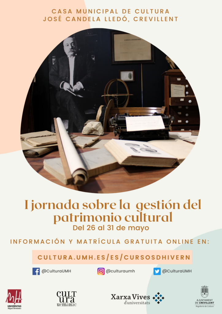 El próximo día 10 de mayo a las 12 horas en la casa Municipal de Cultura tendrá lugar la presentación de las “I JORNADA SOBRE LA GESTIÓN DEL PATRIMONIO CULTURAL COMO DINAMIZADOR DEL TERRITORIO” en la que nos acompañará Matilde Baño Caballero, responsable de la Oficina de Cultura e Igualdad de la Universidad Miguel Hernández de Elche.