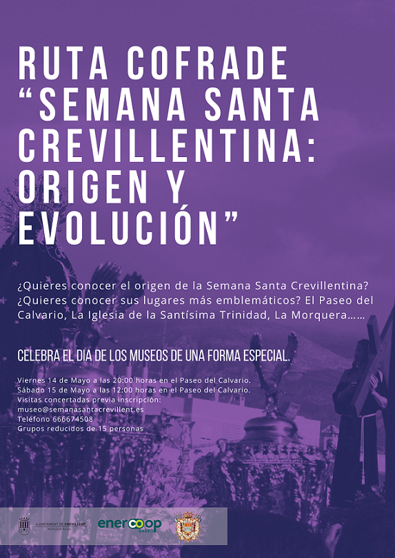 Per la seua part el Museu de la Setmana Santa organitzarà la Ruta Confrare, per a la visita dels llocs més emblemàtics de la Setmana Santa de Crevillent i que es realitzarà els dies divendres 14, a les 20 h, i dissabte 15, a les 12 h,amb eixida des del Passeig del Calvari. També s’organitzarà l’Exposició “Indumentària de la Setmana Santa de Crevillent” i que s’inaugurarà el dimarts dia 18, a les 19.30 h.