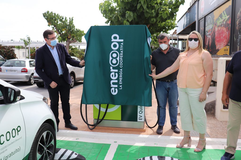 Grupo Enercoop, ha puesto en marcha hoy en Crevillent la primera estación de recarga para vehículos eléctricos de la AP-7 y la A-7 entre Valencia y la Región de Murcia. Inicialmente el servicio será gratuito para los clientes del grupo