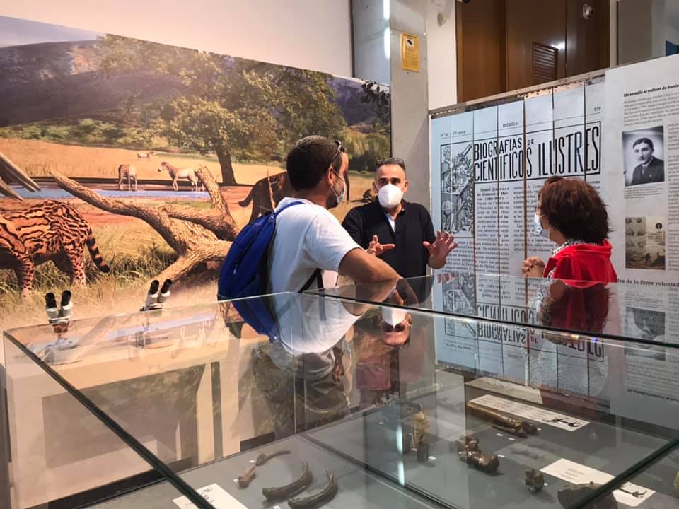 Entre els visitants cal destacar al besnet de l’il·lustre paleontòleg, Daniel Prada Jiménez de Cisneros que, acompanyat de la seua família i de la seua mare Consuelo Jiménez de Cisneros, els qui han cedit material essencial perquè la mostra poguera organitzar-se, es va desplaçar fins a Crevillent per a conéixer de primera mà l’exposició. Daniel Prada Jiménez de Cisneros és director de l’Oficina de Comunicació d’Espanya en les Nacions Unides, a Nova York. Va mostrar als comissaris la seua satisfacció, no sols per l’exposició sinó per les diferents línies de treball desenvolupades des de l’Ajuntament de Crevillent, entre les quals figuren el curs d’estiu de l’UMH, el documental, les diverses publicacions i el cicle de conferències, si bé aquest últim es va veure interromput per la pandèmia.