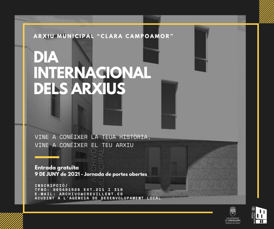 L’Arxiu Municipal “Clara Campoamor” celebra el pròxim 9 de juny el Dia Internacional dels Arxius, amb una Jornada de Portes Obertes dirigida a tots aquells crevillentins i crevillentines que vulguen visitar aquestes instal·lacions culturals