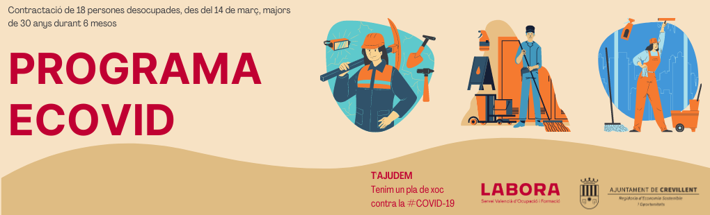 El Ayuntamiento recibirá 187.789,52 € euros a través del programa ECOVID 2020 del LABORA para contratar a 18 personas desempleadas mayores de 30 años durante 6 meses