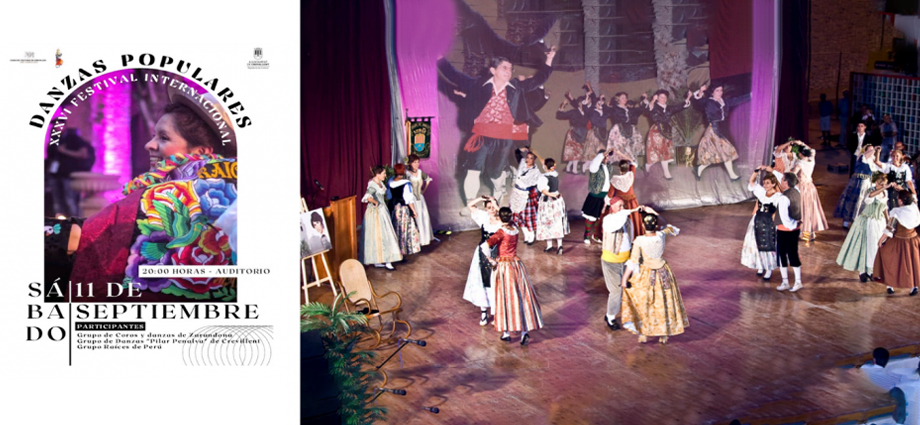 L’Auditori de la Casa Municipal de Cultura José Candela Lledó acollirà el pròxim 11 de setembre a les 20 hores les actuacions de “I.C. Raíces del Perú”, “Grupo de Coro y Danzas de Zarandona” i del Grup de Danses Pilar Penalva de Crevillent