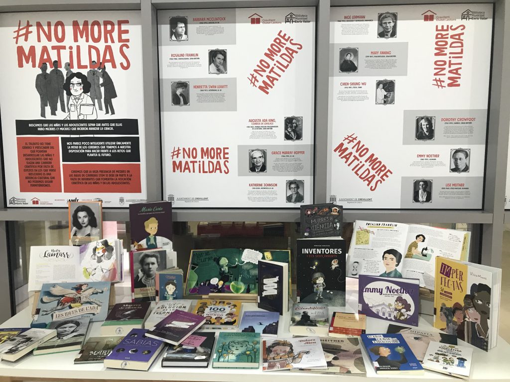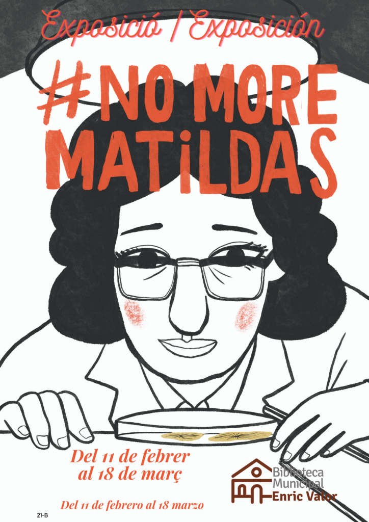 Desde el día 11 al 28 de febrero estará expuesta en la Biblioteca municipal Enric Valor La exposición #NoMoreMatildas, uniéndonos a la celebración del Día Internacional de la Mujer y la Niña en la Ciencia