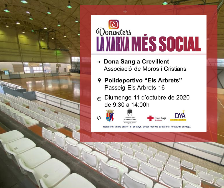 Diumenge que ve, dia 11 d’octubre, es durà a terme una campanya d’extracció de sang extraordinària promoguda per l’Associació de Festes de Moros i Cristians de Crevillent, amb l’objectiu d’animar a la participació dels crevillentins i crevillentines i superar les 100 donacions.