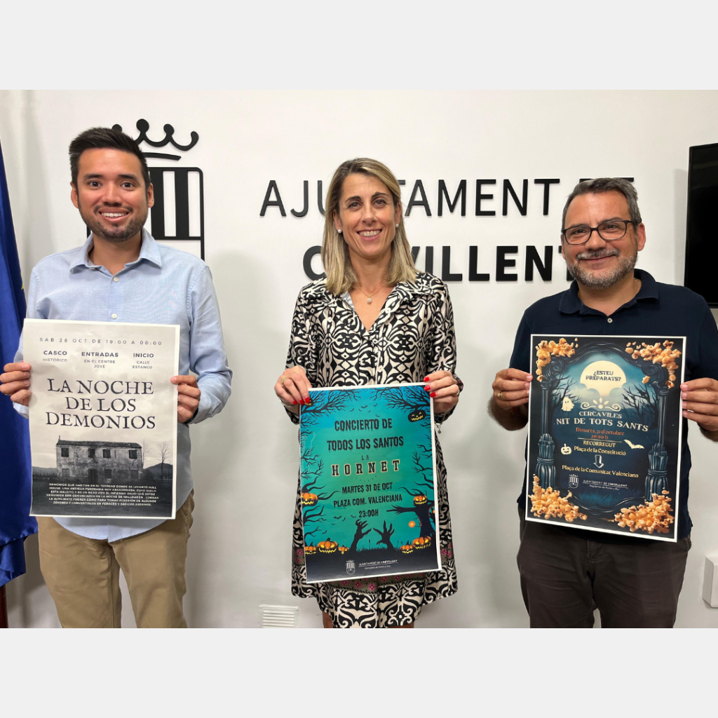 Crevillent – L’Ajuntament de Crevillent ha presentat part de la seua programació emmarcada en els dies previs al dimecres 1 de novembre, el Dia de Tots els Sants. El regidor de Joventut i Oci, Pedro García Magro, i l’edil de Festes, Antonio Candel Rives, han detallat, en companyia de l’alcaldessa Lourdes Aznar Miralles, la programació que comprén tallers per als xiquets i xiquetes, un cercaviles, un passatge del terror i un concert del grup “La Hornet”.