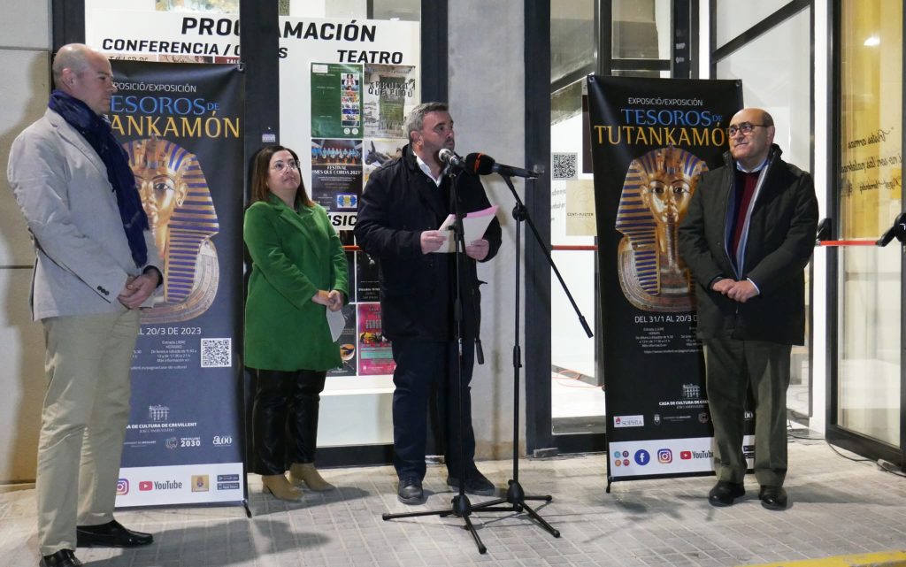 L’alcalde ha expressat durant la seua intervenció en l’acte que “és tot un orgull per a Crevillent acollir una exposició de tan alt calibre, i m’alegra profundament que per a celebrar una de les efemèrides més destacades de la ciència de l’Egiptologia, els cent anys del descobriment de la tomba de Tutankamon, puguem gaudir d’aquesta impressionant recreació en el nostre municipi”.