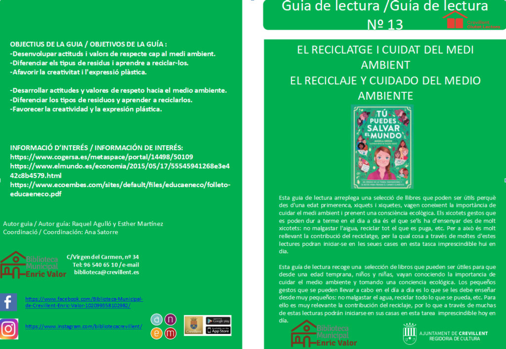 Des de la Biblioteca Municipal volem insistir en esta important problemàtica social i ensenyar als xiquets i xiquetes els xicotets gestos que es poden dur a terme en el dia a dia, com no malgastar l’aigua, reciclar,… a través de lectures lúdiques i divertides amb les que podran iniciar-se en esta tasca imprescindible hui en dia.