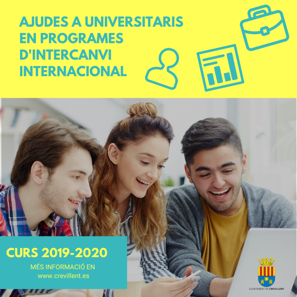 La Regidoria de Cultura informa que es ja està obert el termini de sol·licitud dels dos programes d’ajudes municipals anuals per al curs 2019-2020, dirigides a estudiants empadronats a Crevillent. Els interessats i interessades podran presentar les seues sol·licituds fins al dijous 23 de juliol sol·licitant cita prèvia a la Casa Municipal de Cultura.