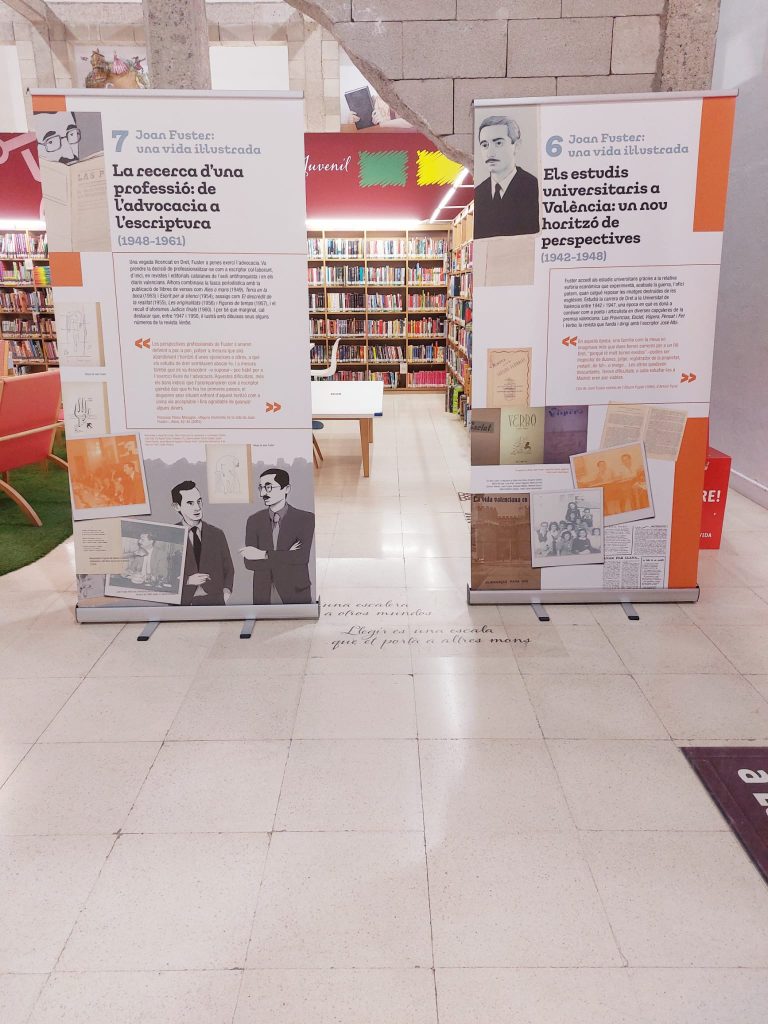 • La Biblioteca Pública Municipal “Enric Valor” alberga en les seues instal·lacions l’exposició dedicada a la vida i obra de Joan Fuster, cedida per l’Acadèmia Valenciana de la Llengua