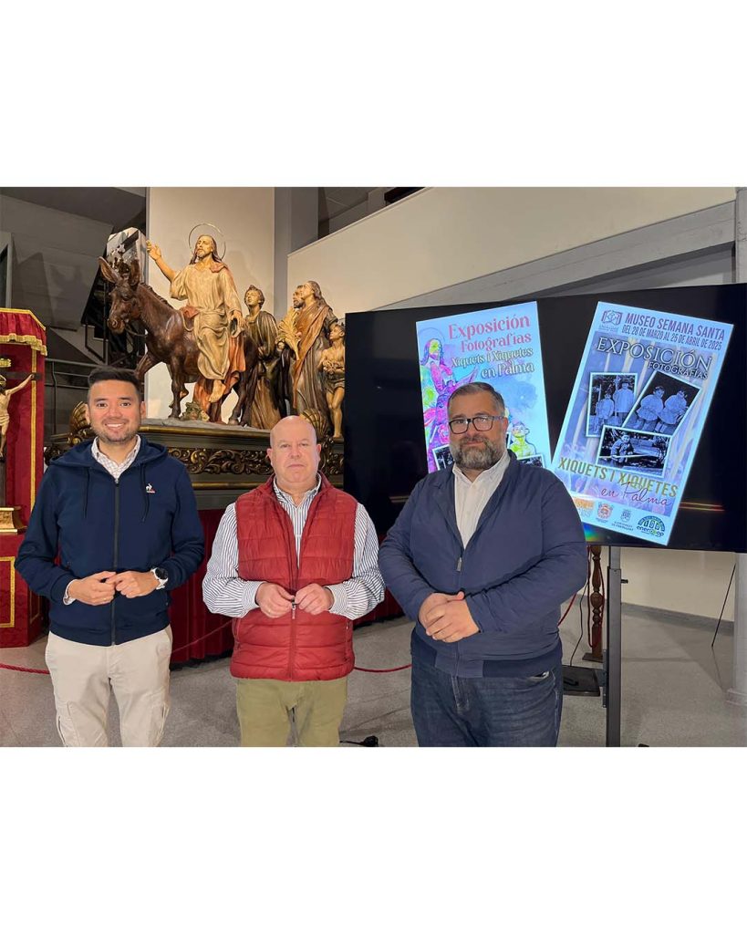 Crevillent – El concejal de Juventud, Pedro García Magro, junto con el presidente de la Federación de Cofradías y Hermandades de la Semana Santa, Mario Ruiz Igual, y el presidente de la Cofradía “Jesús Triunfante”, Jesús Mas Mas, han anunciado este miércoles la exposición “Xiquets i Xiquetes en palma” que se podrá visualizar a partir del próximo 22 de marzo sobre las cristaleras del Centre Jove “Juan Antonio Cebrián” y a partir del 28 de marzo en el Museo de la Semana Santa.