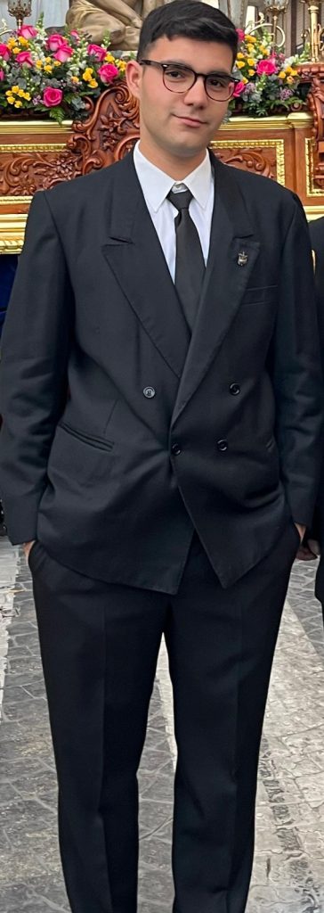 En esta ocasión, la responsabilidad corresponde a la Cofradía de la Virgen de las Angustias, que ha designado como Caballero Portaestandarte a D. Aarón Berruezo Forner, cofrade desde su nacimiento y con una estrecha vinculación a la Semana Santa de Crevillent, tanto a nivel personal como familiar.