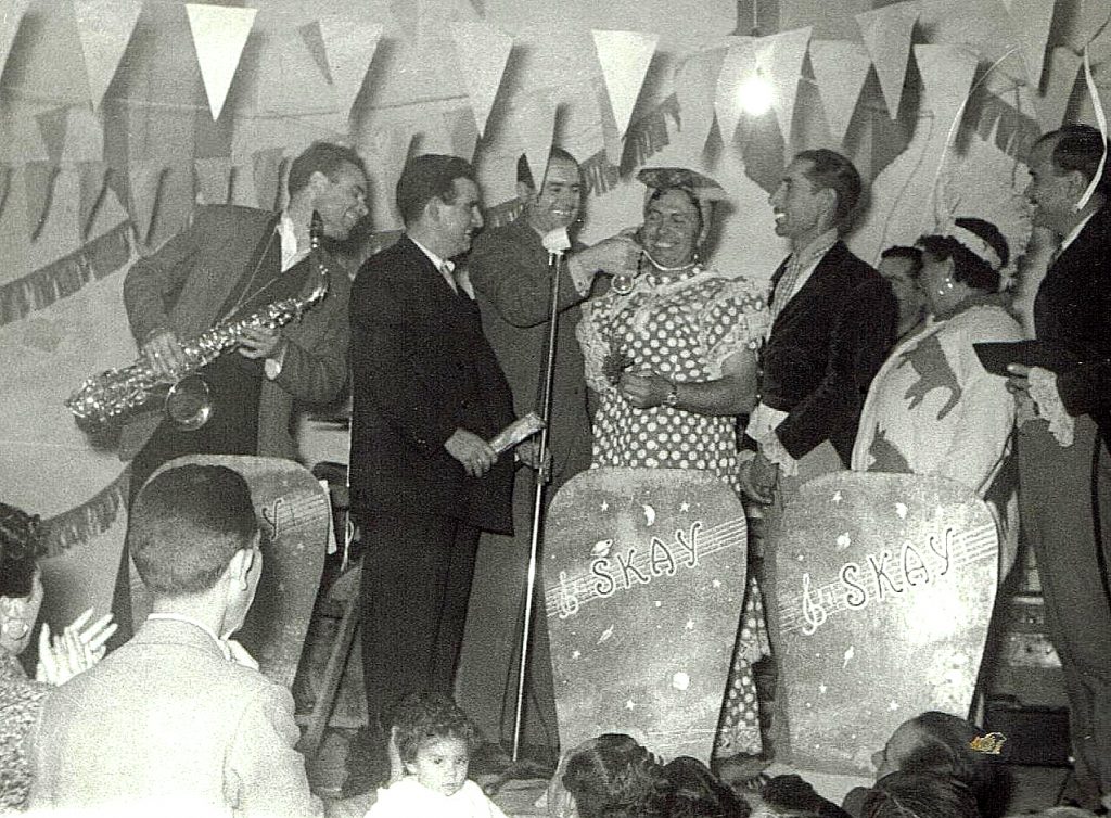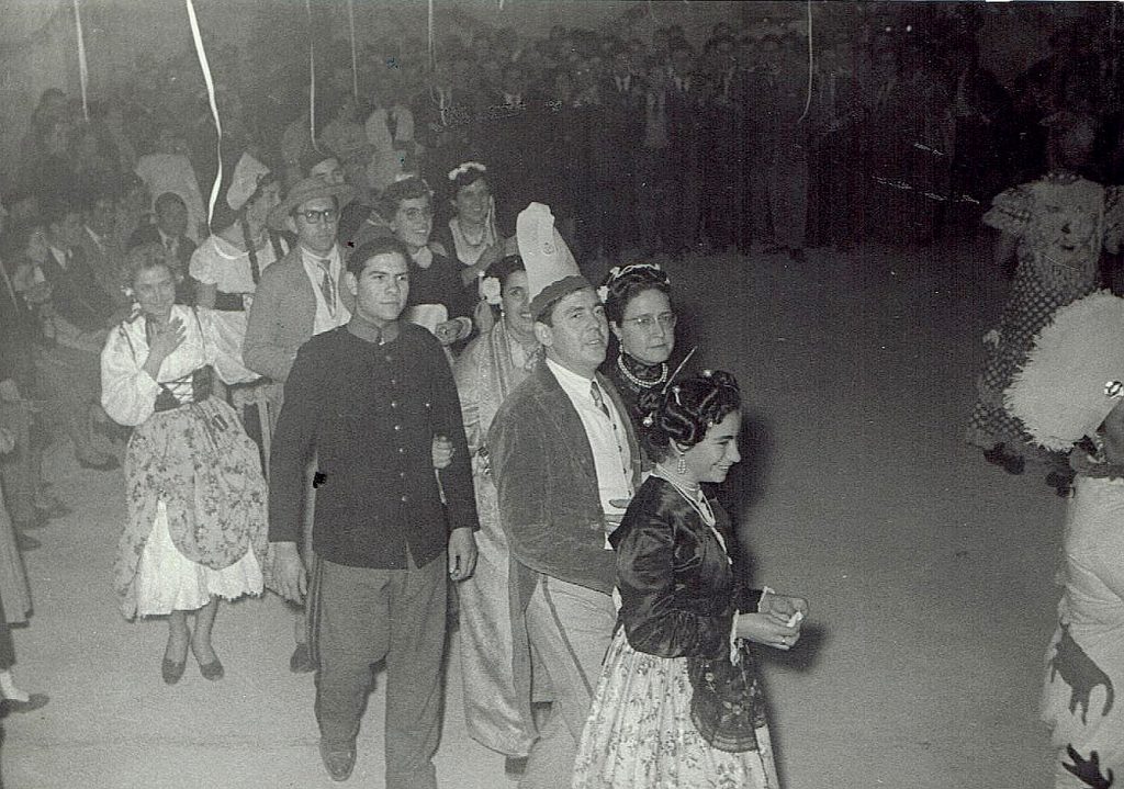 Partamos de unas fotos del año 1953: “Los coralistas disfrazados en pasacalle, haciendo las delicias del público”, bailes con orquestina, sopes de faixa. Por supuesto que también se celebraba con conciertos de gala, pero la característica fundamental de esta fiesta era la de ser una fiesta interna, por y para los músicos, donde con el ingenio que caracteriza a los crevillentinos se pasaba revista a las actuaciones del año, se repartían premios al mejor coralista, se hacían parodias de las actuaciones del año y hasta se criticaba a los directores, como un desahogo por la disciplina impuesta en los ensayos y que tanto costaba imponer.