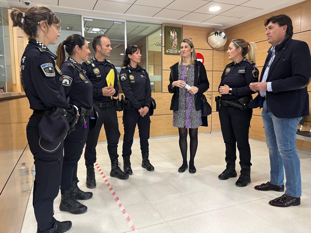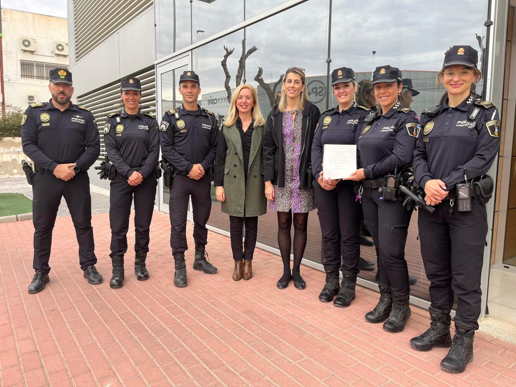 L’alcaldessa de Crevillent, Lourdes Aznar Miralles, i l’edil de Policia, Gema Escolano Berná, han assistit este divendres a la seu de la Policia Local per a donar l’enhorabona a la UVIME per l’obtenció del Premi a la Perseverança i Esforç, concedit per la FEMP i per l’Associació Nacional d’Agents Tutors (ANAT) a través dels III Premis Nacionals a les Bones Pràctiques amb la finalitat de conéixer més a fons la labor que exerceix esta unitat especialitzada en l’atenció a víctimes i mediació policial.