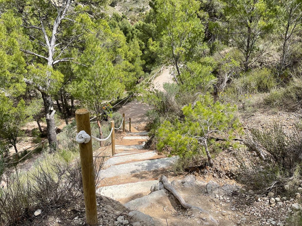 - Entre las tareas realizadas por la Concejalía de Medio Ambiente y Lucha contra el Cambio Climático está la reparación y restauración de los escalones de madera, la incorporación de piedras fotoluminiscentes para mejorar la visibilidad y la incorporación de un sistema de agarre para facilitar un ascenso y descenso de los senderistas de forma más segura