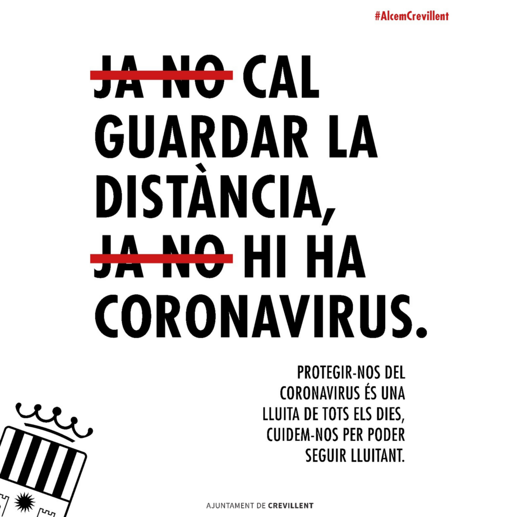 L’Ajuntament de Crevillent llança “Tombem la corba, alcem Crevillent”, una campanya de conscienciació per a recordar la importància de seguir les recomanacions de les autoritats i complir les mesures higienicosanitàries per a previndre possibles rebrots