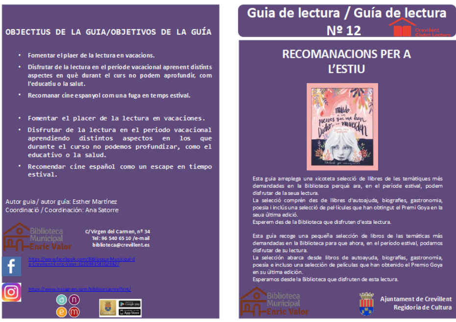 Con motivo del inicio de la época estival, desde la Biblioteca Pública Municipal “Enric Valor”, se ha preparado una guía con recomendaciones de libros de diversas temáticas para su lectura durante la época estival.