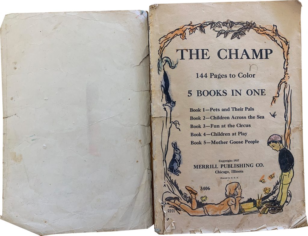 Foto 2. “The Champ”. Libro infantil para colorear fechado en 1937, remitido por niños estadounidenses para los niños de la guerra españoles.