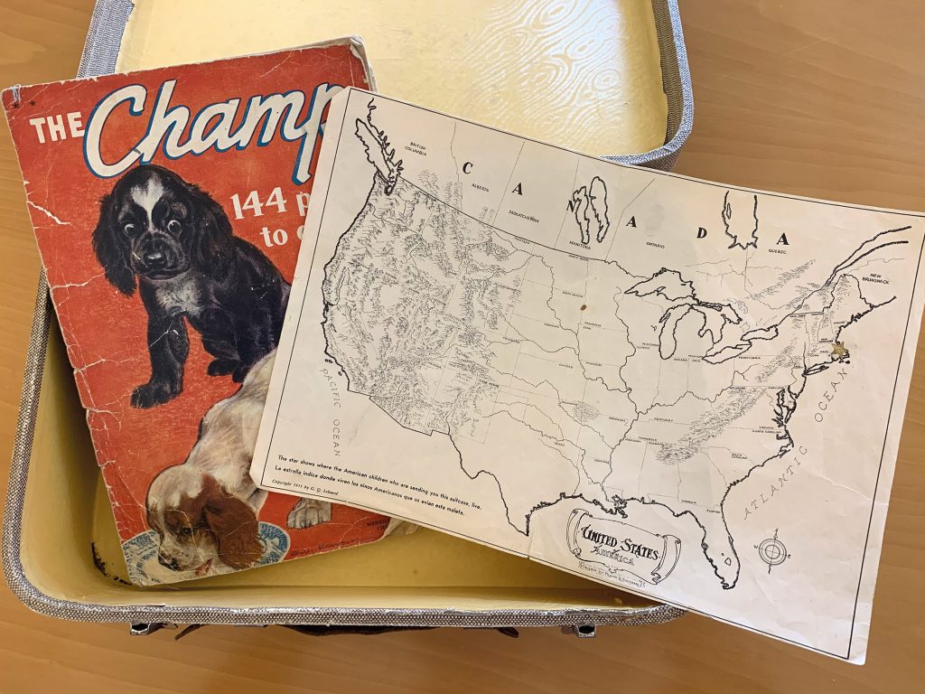 Foto 1. Maleta que entregaron al pequeño Salvador Aznar, hacia 1938, en Los Molinos con parte de su contenido original.