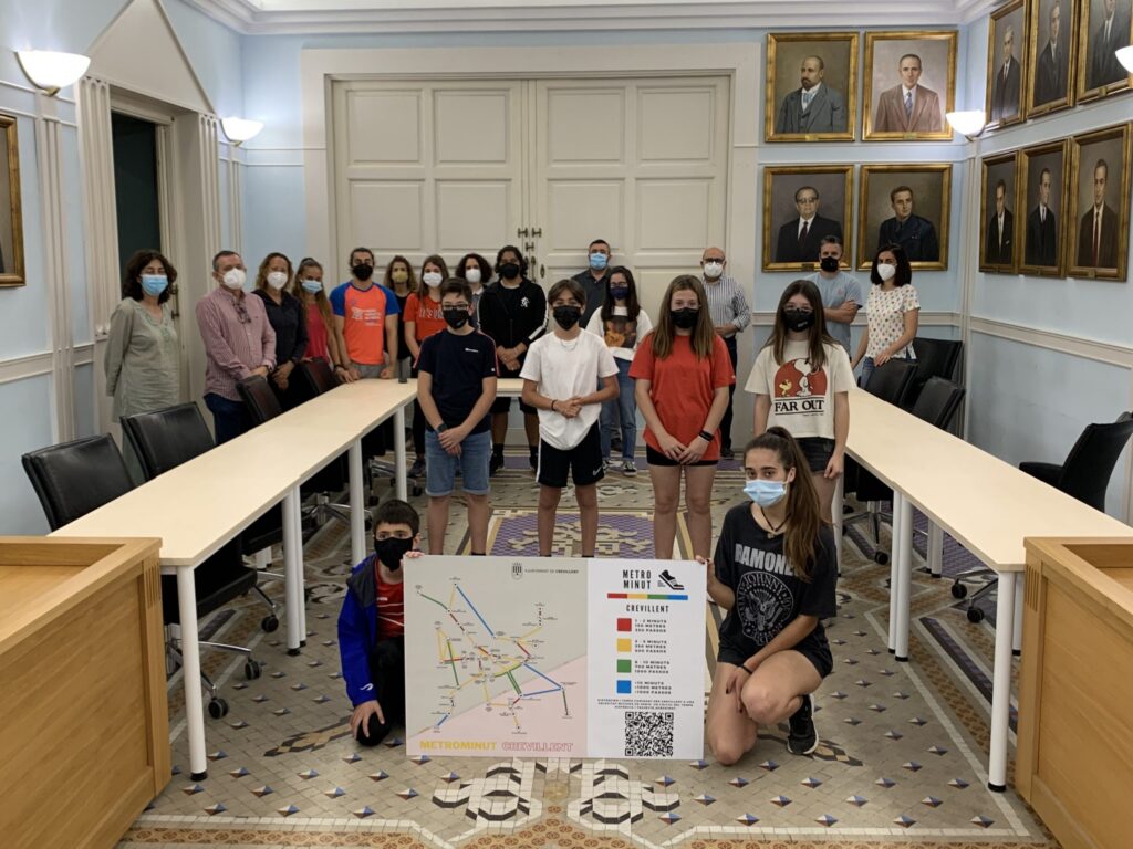 Les regidories d’Educació i Medi Ambient i Lluita contra el Canvi Climàtic han presentat Metrominut, el nou projecte dissenyat i desenvolupat pels IES Macià Abela i Canonge Manchón per a fomentar la mobilitat a peu dins del nucli urbà de Crevillent.