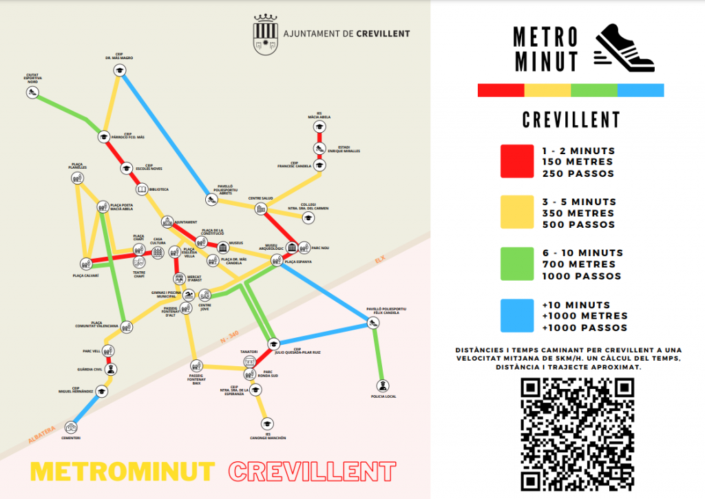 “Abans el comú era que els xiquets i xiquetes es desplaçaren al col·le i als instituts caminant, soles o acompanyats d’amics i amigues, i jugàvem als nostres carrers i places. Desplaçar-se caminant genera molts beneficis individuals i col·lectius al nostre poble i també per al nostre planeta. Volem aprofitar la celebració del 5 de juny, Dia del Medi Ambient, per a ressaltar la conveniència de recuperar eixos hàbits. Està previst instal·lar 12 plànols en llocs d’interés perquè la ciutadania puga comprovar per si mateixa el temps que es tarda caminant d’un lloc a un altre a Crevillent” afirma la regidora Estefanía Salinas Peral.