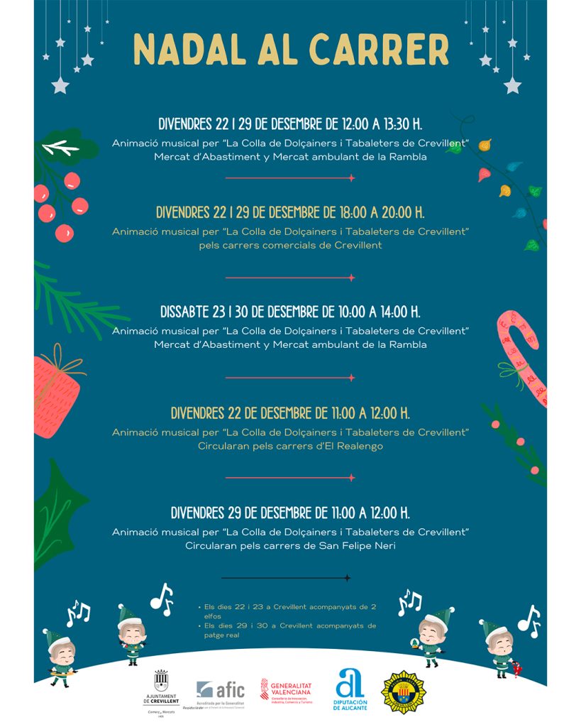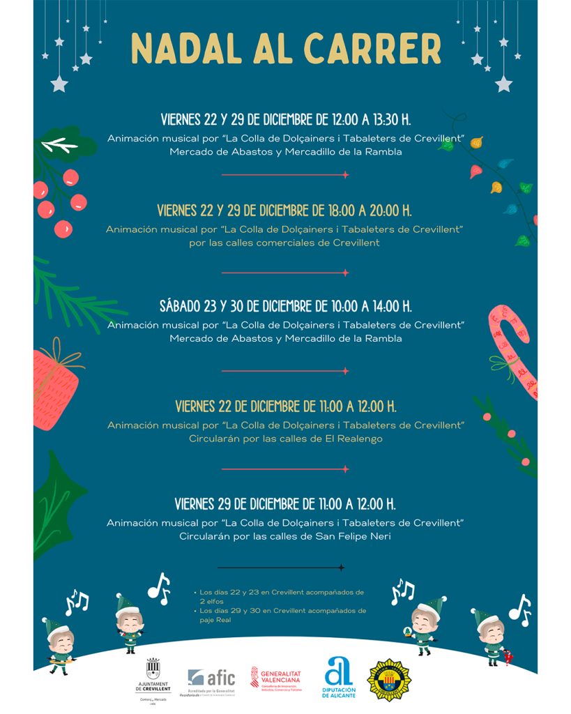 L’edil de Comerç, Antonio Candel, ha afirmat que “es tracta d’una activitat que pretén generar una ambientació nadalenca als carrers amb la interpretació musical del grup de dolçainers i tabaleters que aniran acompanyats amb elfos i patges”. Candel ha afegit que “es desplaçaran per zones com el Mercat d’Abastos o el Mercat ambulant, i també aniran a les pedanies de El Realengo i San Felipe Neri”. L’objectiu d’esta iniciativa, a més d’alegrar amb música la realització de l’activitat, és el de promocionar el nostre comerç local, convidant a la ciutadania al fet que realitze les seues compres en la localitat.