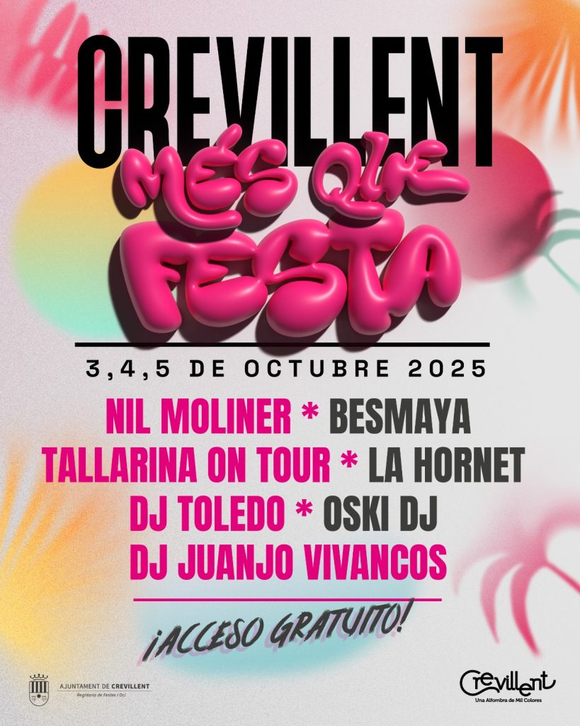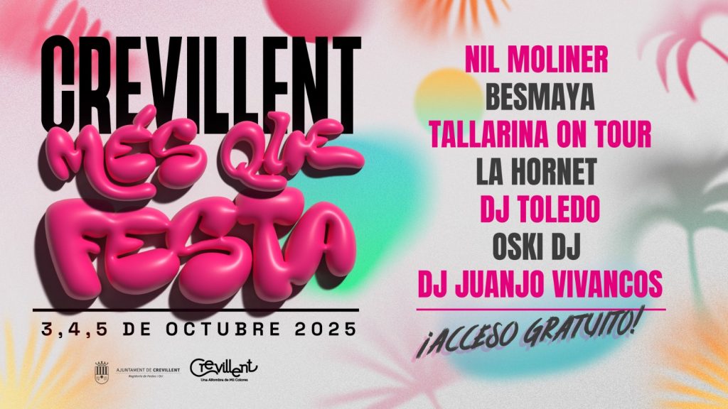 Nil Moliner, Besmaya, La Hornet i el xou de Tallarina On Tour encapçalen el cartell de les Festes de Crevillent 2025