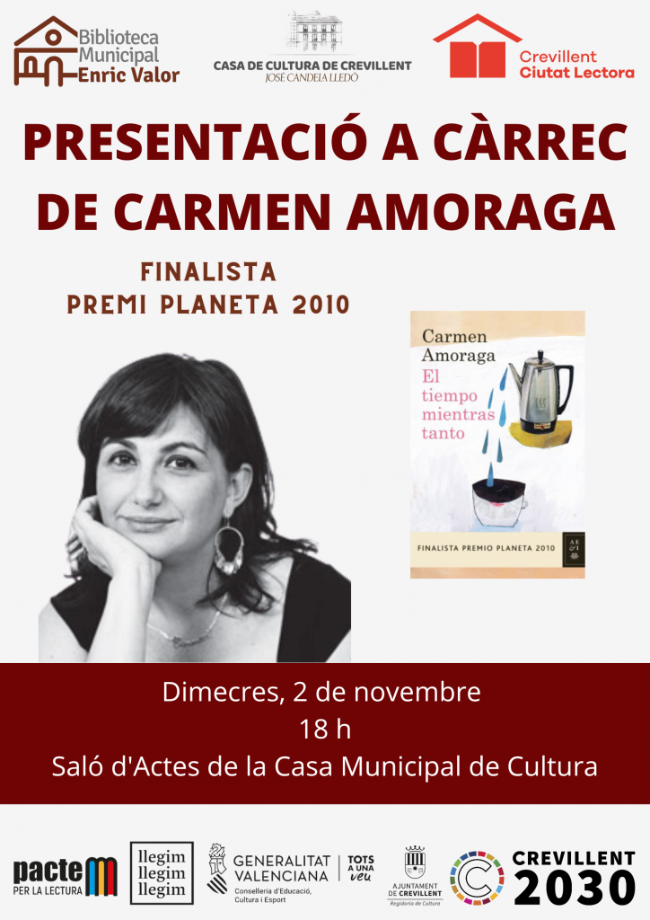 La Biblioteca Municipal está adherida al programa PACTEM PER LA LECTURA de la Conselleria de Educación, Cultura i Esport y dentro de este proyecto nos han incluido en el programa de LLEGIM ALS POBLES cuyo objetivo es el Fomento por la lectura organizado per la Direcció General de Cultura i Patrimoni con la finalidad de incrementar la lectura a través de la interacción de los autores con los lectores. El programa contempla la realización de 20 sesiones en cada una de las provincias y Crevillent ha sido seleccionada, organizando el encuentro con la autora Carmen Amoraga el próximo día 2 a las 18 horas en la Casa Municipal de Cultura de la localidad.