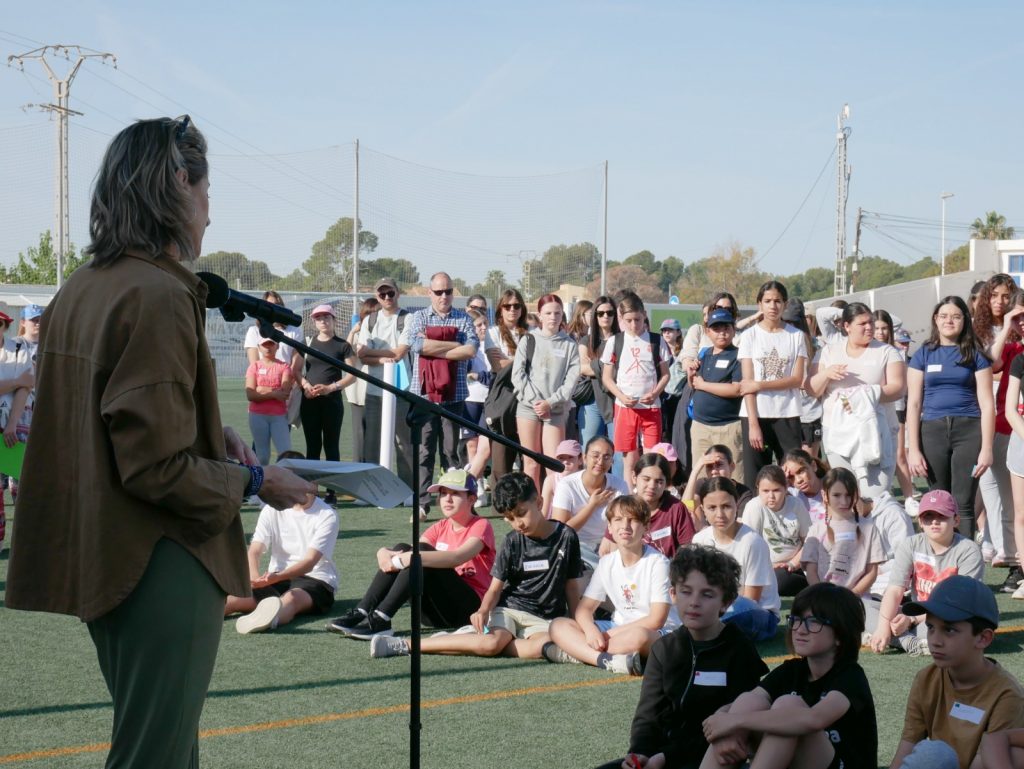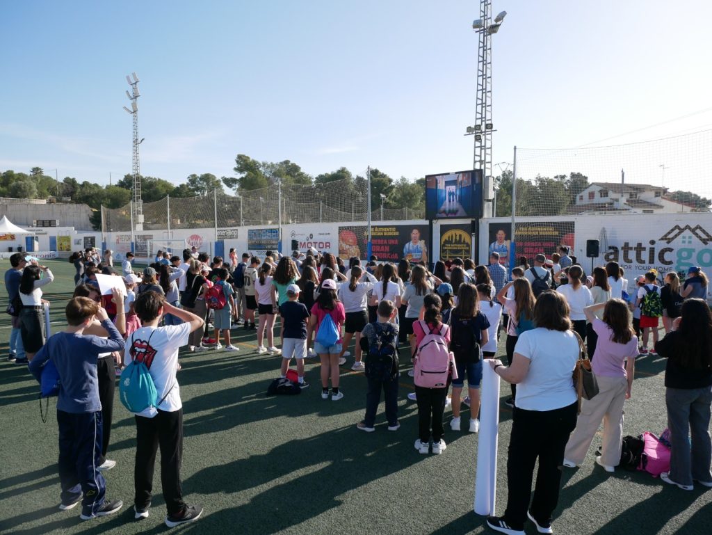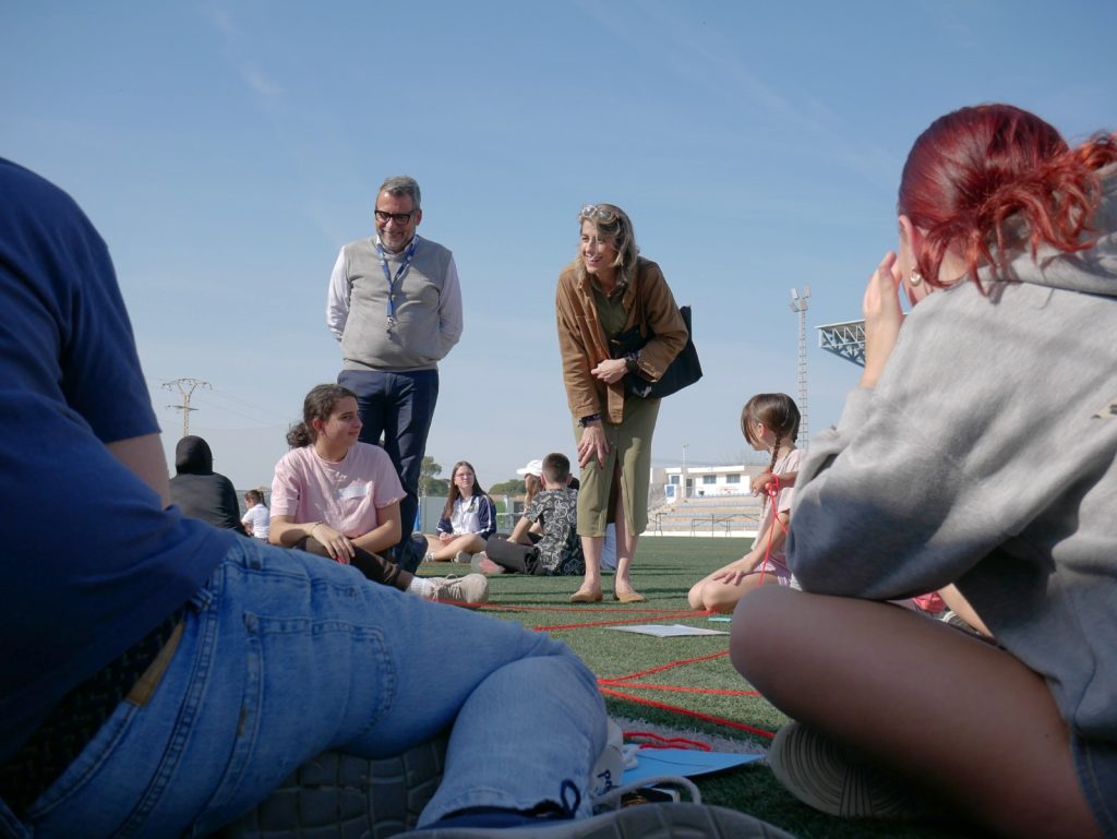 Crevillent – La alcaldesa Lourdes Aznar Miralles, junto con el concejal de Educación, Antonio Candel Rives, y la coordinadora de la demarcación Territorial de Orientación A5-A: María Luisa Calderón Espadas, han asistido este martes a las V Jornadas de Observadores para la Convivencia Escolar celebradas en el Campo de Fútbol “Enrique Miralles Miralles”. Alrededor de 120 alumnos y alumnas, procedentes de todos los colegios e institutos de la localidad, han participado en esta acción educativa, orientada a la promoción de la convivencia y la prevención del acoso escolar, con la que se pretende sensibilizar a toda la comunidad educativa de la importancia de observar y darnos cuenta de que toda persona es importante en un grupo, y si algún compañero/a lo está pasando mal, no podemos mirar para otro lado. Para ello se introduce la figura del “Observador de la Convivencia” en los colegios e institutos, con el fin de detectar situaciones que alteran la convivencia y promover actitudes de ayuda entre iguales.