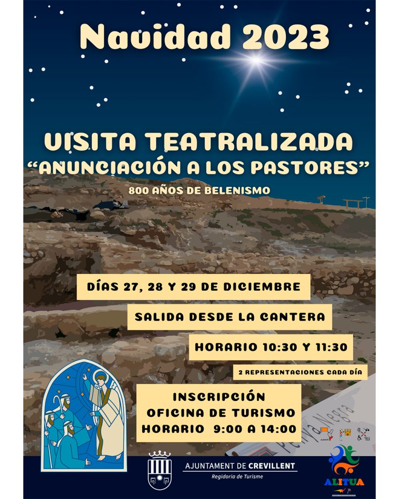 Crevillent – El concejal de Turismo en el Ayuntamiento de Crevillent, Pedro García Magro, ha desvelado todos los detalles de la ruta teatralizada “La anunciación de los pastores” que se desarrollará los próximos días 27, 28 y 29 de diciembre por nuestra sierra. Esta ruta tendrá como protagonistas a los principales belenes que encontramos en la sierra crevillentina y profundizará en el yacimiento histórico de Penya Negra.