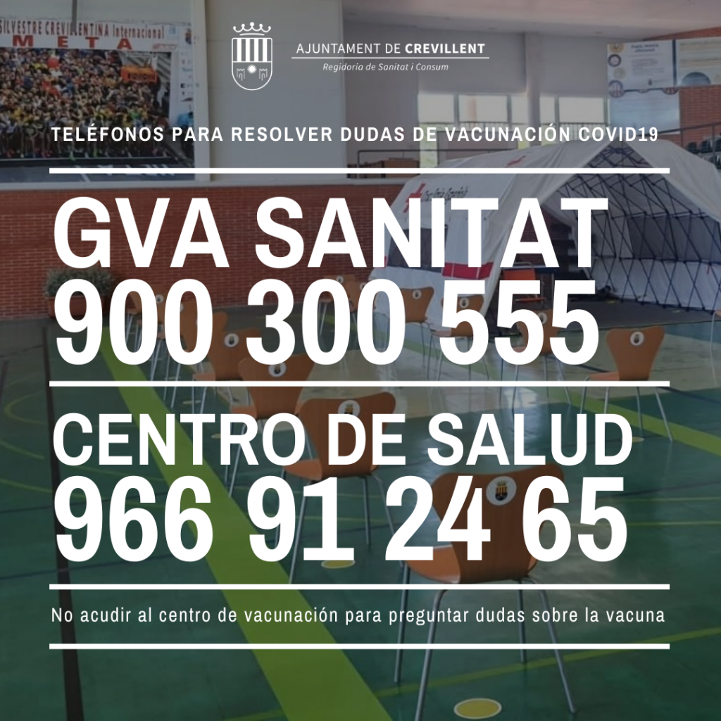 Gema Candelaria Asencio, concejala de Sanidad, señala que se debe tener en cuenta los requisitos que marca cada país a la hora de viajar ya que pueden ser modificados por motivos de salud pública. En cuanto a la campaña de vacunación, la edil ha resaltado que ahora mismo en el Polideportivo Félix Candela se está vacunando a las personas de entre 49 y 40 años. Los horarios de vacunación de esta semana son martes de 15 h a 21 h, miércoles de 8:30h a 20:30h y jueves de 08:30h a 17h. Gema Candelaria ha apuntado que ante cualquier duda o consulta sobre los certificados o la vacunación se puede contactar con la Conselleria de Sanidad a través del teléfono 900 300 555. Mientras que las personas que no se han vacunado, habiendo pasado su corte de edad, deben ponerse en contacto con el Centro de Salud llamando al 966 912 465.“Es muy importante que las personas que tengan dudas sobre la vacunación y no tengan cita mediante SMS no acudan al Félix Candela para no ralentizar el proceso de vacunación”. Hasta ahora, el número de crevillentinos y crevillentinas vacunados es de 15.340, de los cuales 10.088 cuentan con la primera dosis y 5.262 con las dos.